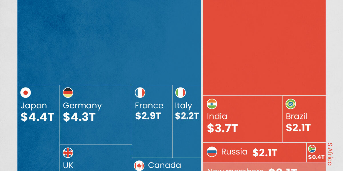 Nelle tabelle seguenti, puoi vedere come i nuovi membri influenzano il PIL del blocco e come i BRICS si confrontano con i paesi del G7.