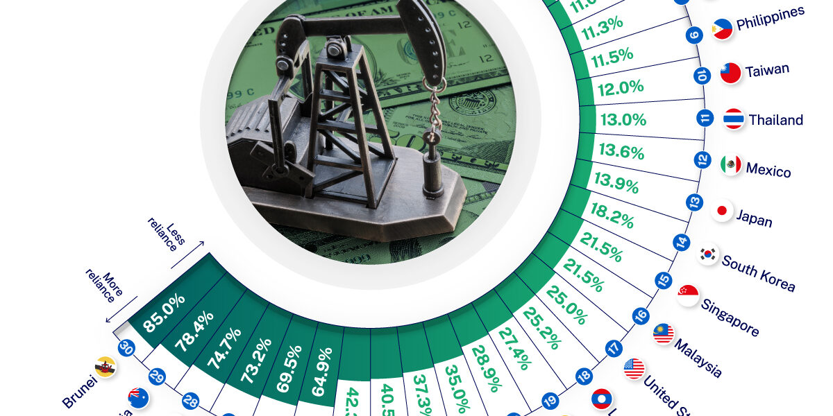 I tre paesi con la più alta quota di risorse naturali nel commercio sono il Brunei (85,0%), l’Australia (78,4%) e la Russia (74,7%).