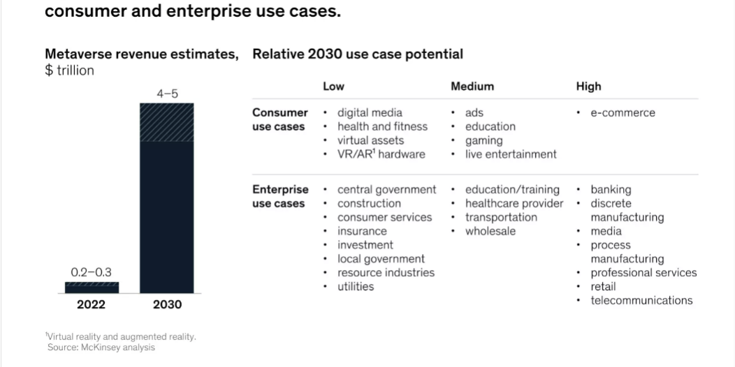 Le aziende che stanno costruendo il metaverso lo vedono come la prossima iterazione di Internet, scrive McKinsey, che stima un potenziale mercato da 4-5 trilioni di dollari entro il 2030. Per creare una presenza efficace nei mondi virtuali occorrono una precisa strategia e un’innovazione dei modelli di business, ma gli analisti non hanno dubbi: le opportunità sono concrete.