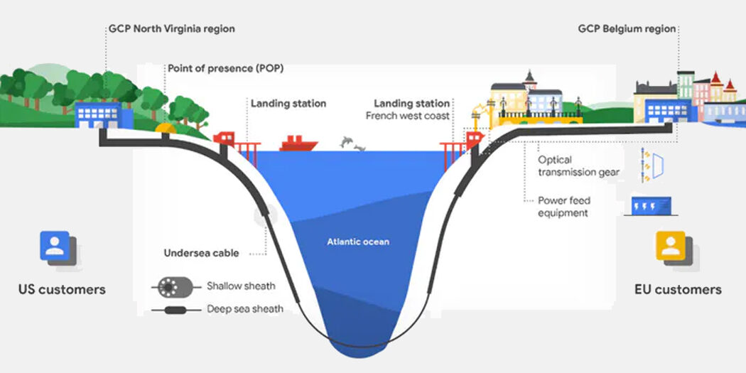Google ha terminato i lavori di posa del cavo sottomarino che collega Virginia Beach, negli Stati Uniti, a Saint Hilaire de Riez, in Francia, attraversando l’Oceano Atlantico. I lavori di posa dei quasi 6.500 chilometri di cavo sono iniziati nel 2018 e ora questo immenso collegamento permetterà ai dati di viaggiare alla velocità di 250 terabit al secondo.