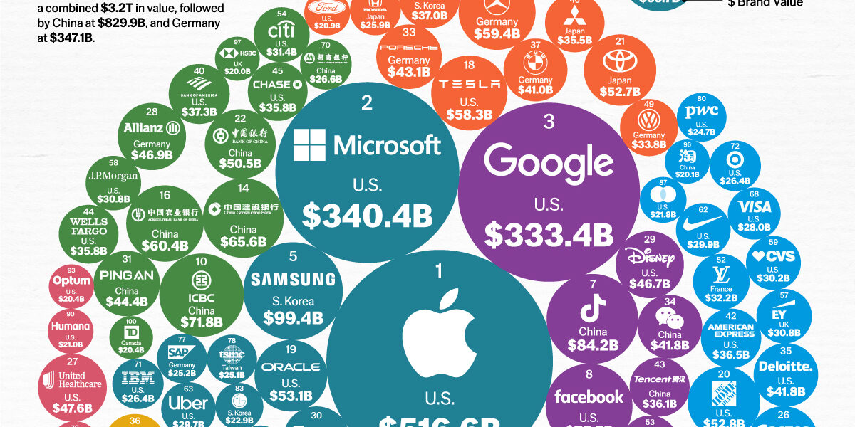 Insieme, i 100 marchi di maggior valore al mondo valgono più di 5 trilioni di dollari.
