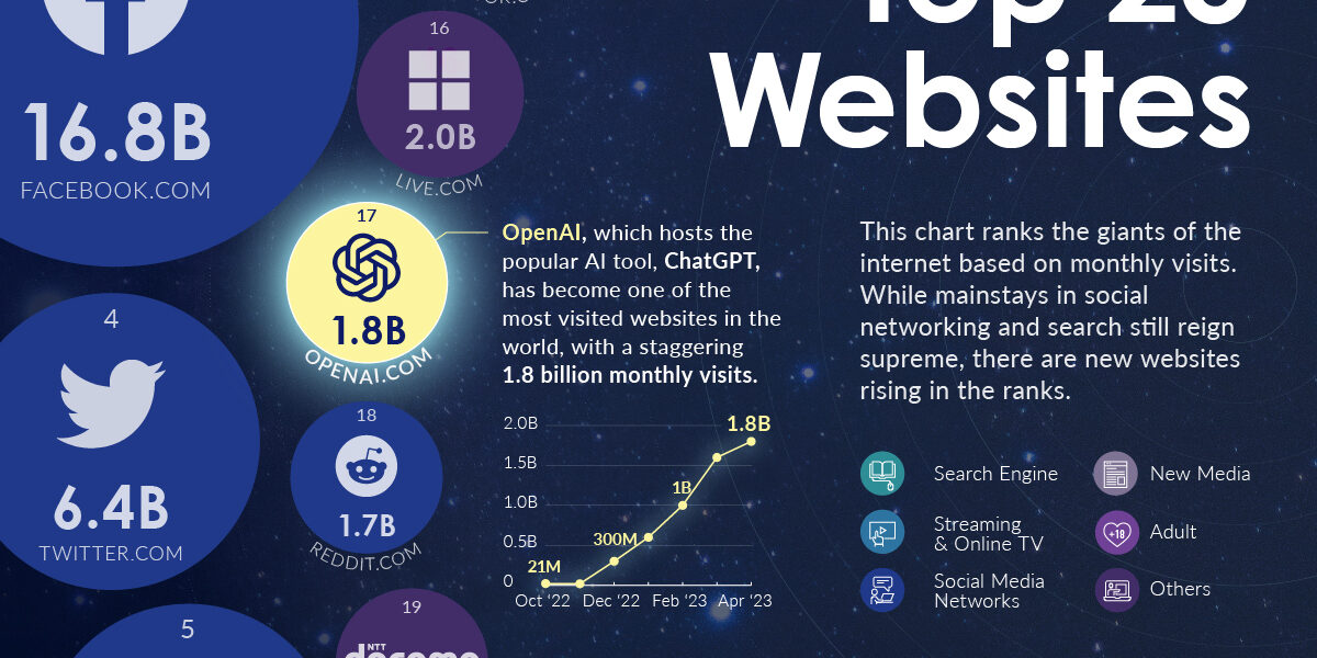 Utilizzando i dati della società di analisi web SimilarWeb, esaminiamo i primi 25 siti Web in base ai loro numeri di traffico più recenti.