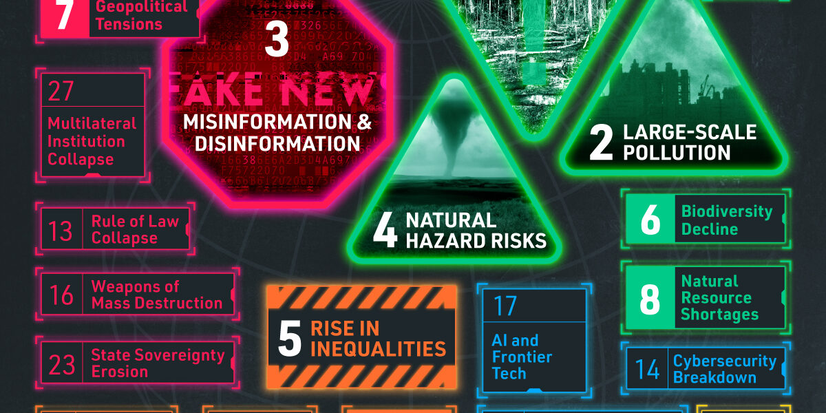 Anche la disinformazione si è classificata come il rischio principale nei prossimi due anni, secondo il rapporto del World Economic Forum Rapporto sui rischi globali.