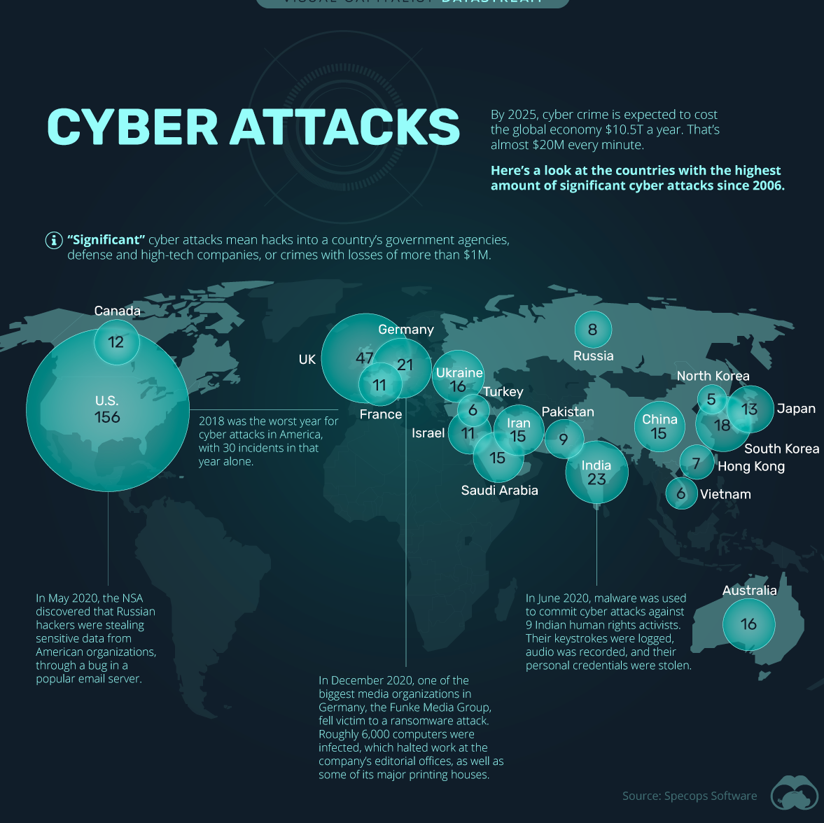 Dal 2006 al 2020, gli Stati Uniti hanno subito 156 attacchi informatici significativi, più del Regno…