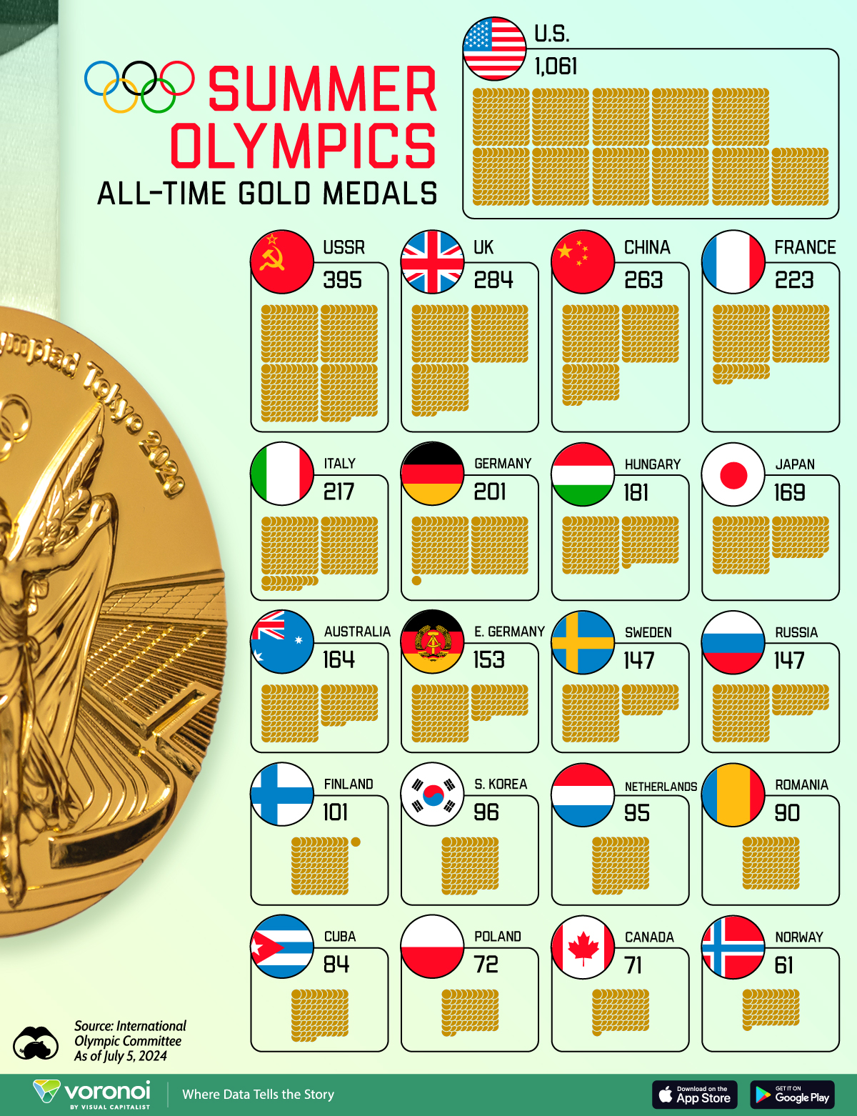 Medaglie d’oro di tutti i tempi alle Olimpiadi estive, per paese